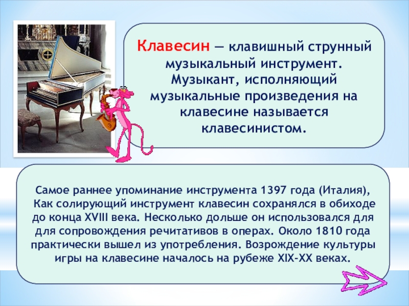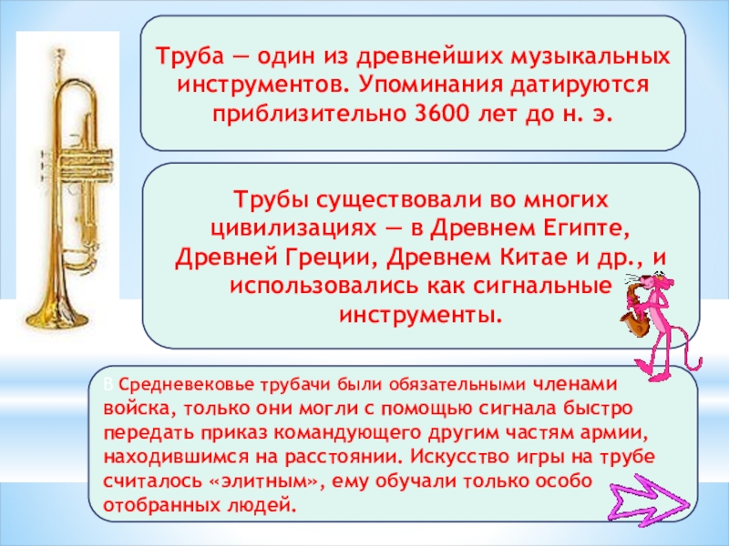 Звучание этого инструмента напоминало Розовой пантере журчание ручья.