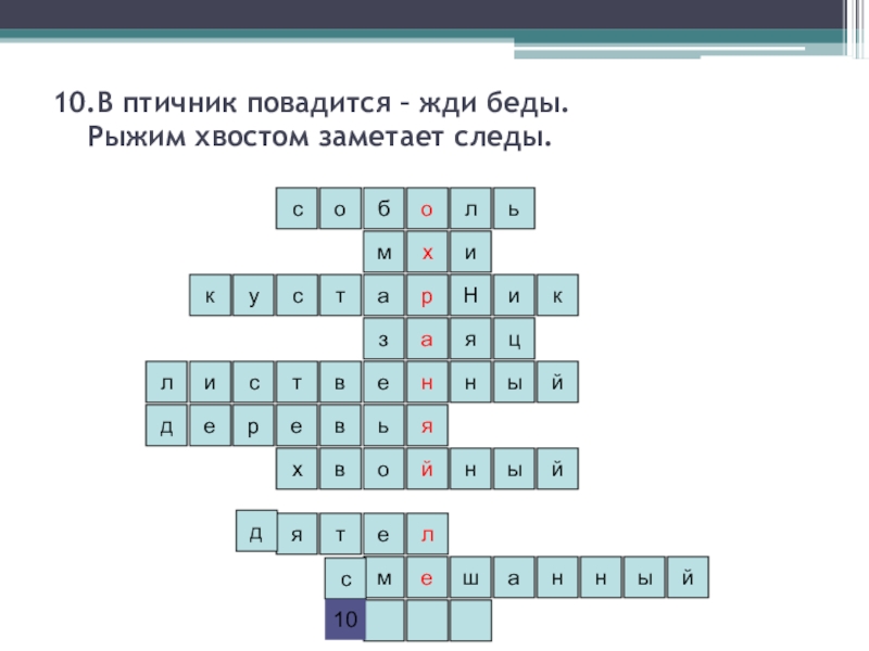 10.В птичник повадится – жди беды.   Рыжим хвостом заметает следы.ьлобосимйянархекцязкуиНставьейлисынтвойындереелхвшмятыннайдс10
