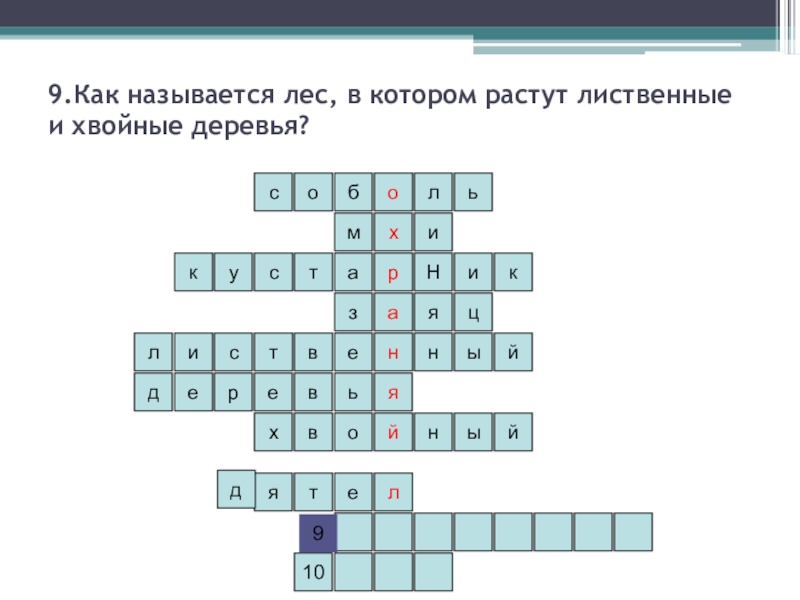 9.Как называется лес, в котором растут лиственные и хвойные деревья?ьлобосимйянархекцязкуиНставьейлисынтвойындерелхвят10д9