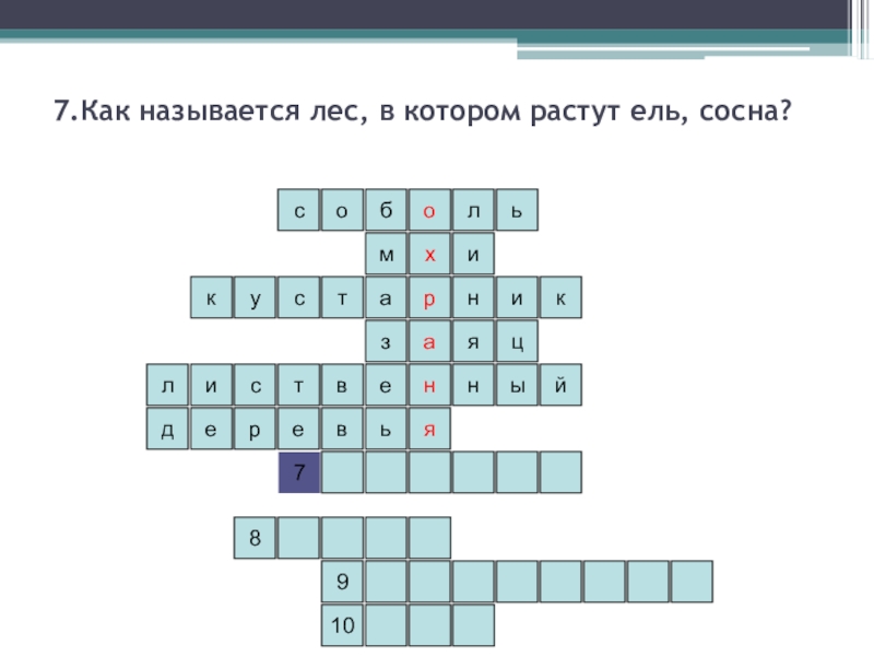 7.Как называется лес, в котором растут ель, сосна?ьлобосимянархекцязкуинставьейлисынтвдер98107