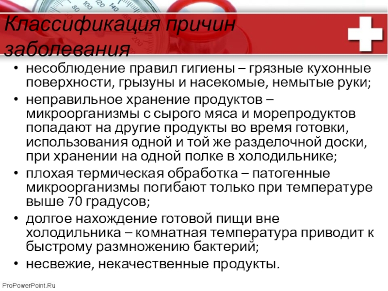 плохая термическая обработка – патогенные микроорганизмы погибают только при температуре выше 70 градусов;