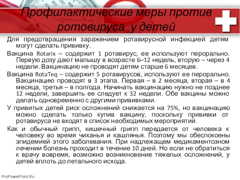 Слайд 14Профилактические меры против ротовируса у детей