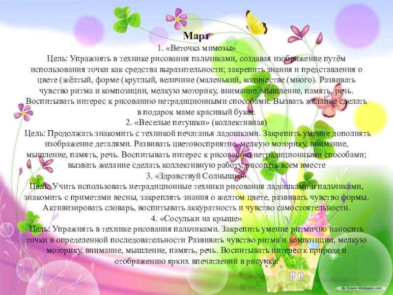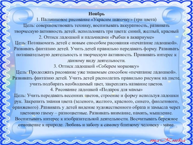 • формировать художественное мышление и нравственные черты личности через нетрадиционные способы рисования.