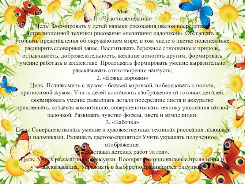 Цель: Формировать у детей навыки рисования цветов посредством нетрадиционной техники