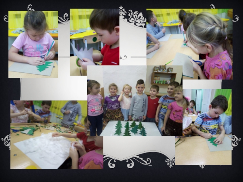 Зимний лесНаучить детей склеивать из цветной бумаги объемную елку. Развивать пространственное восприятие, поддерживать интерес к бумажной пластике.