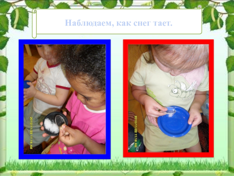 Но наша исследовательская деятельность не ограничивается рамками группы, а продолжается и на прогулочном участке. Мы наблюдаем за живой природой, выясняем, какие условия необходимы для роста растений, играем с сырым и сухим песком и при этом выделяем его свойства. Выясняем где быстрее растает снежинка- на рукавичке или на ладошке, и как сделать разноцветные льдинки.