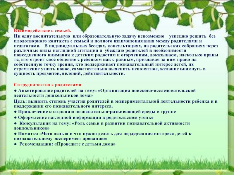 Слайд 6Взаимодействие с семьей.