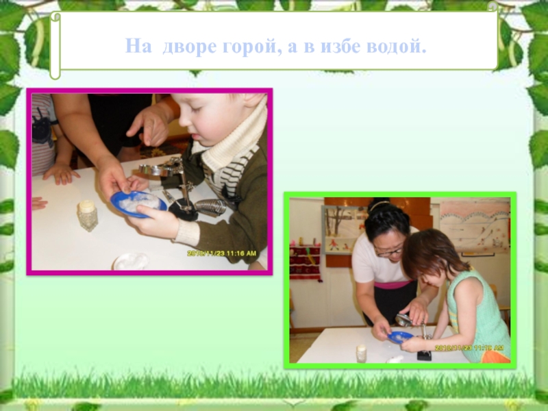 Слайд 13 На дворе горой, а в избе водой.