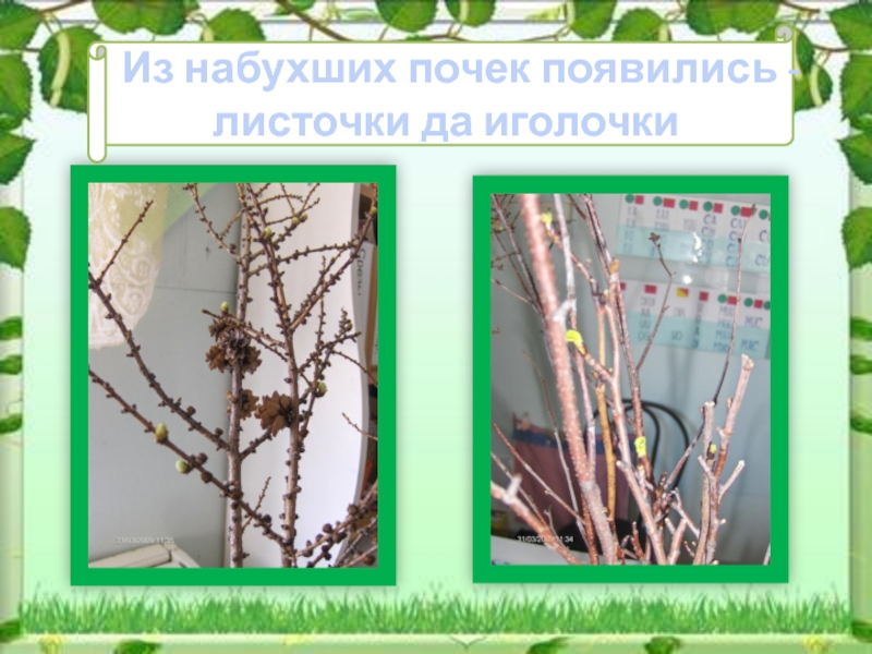 Слайд 10 Из набухших почек появились - листочки да иголочки