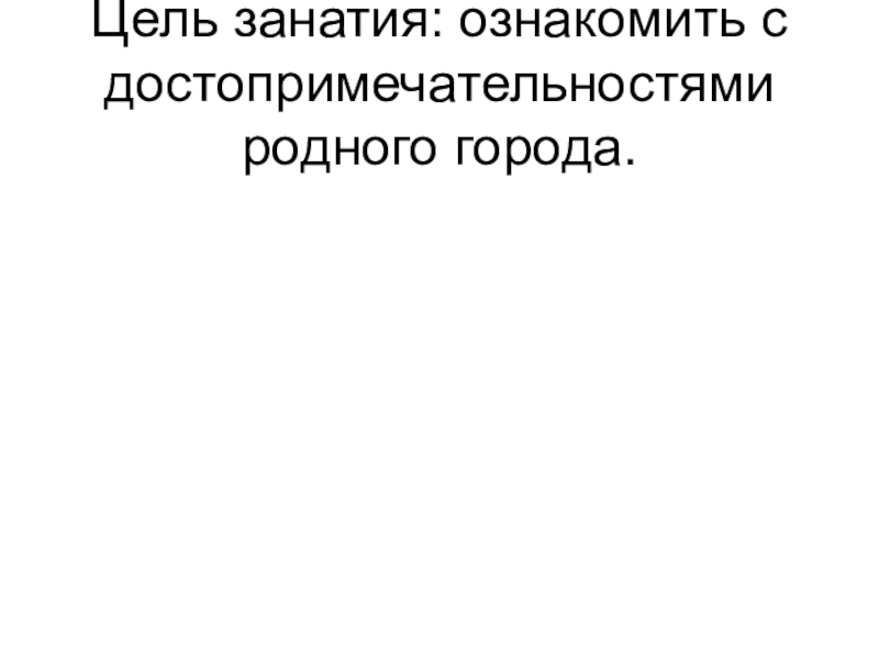 Слайд 2Цель занатия: ознакомить с достопримечательностями родного города.