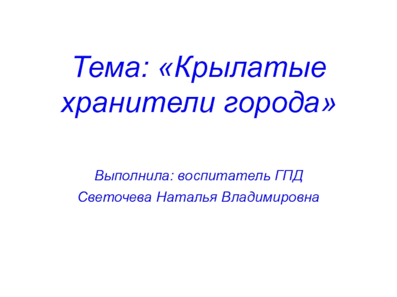 Тема: «Крылатые хранители города»Выполнила: воспитатель ГПДСветочева Наталья Владимировна