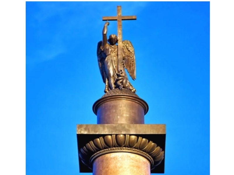 Два крестоносных ангела — на шпиле колокольни Петропавловского собора и на вершине Александровской колонны на Дворцовой площади