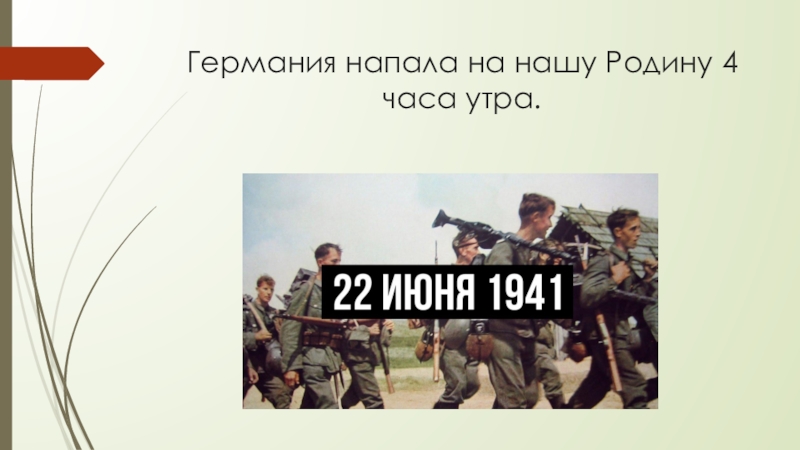 Слайд 2Германия напала на нашу Родину 4 часа утра.