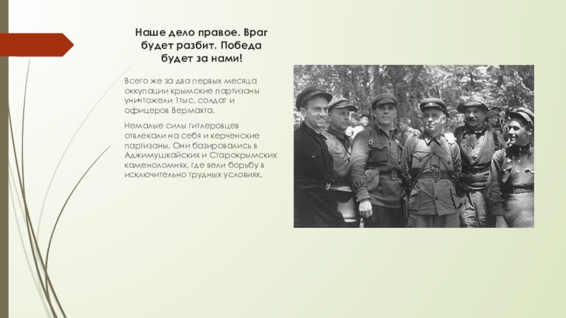 Слайд 8Наше дело правое. Враг будет разбит. Победа будет за нами!