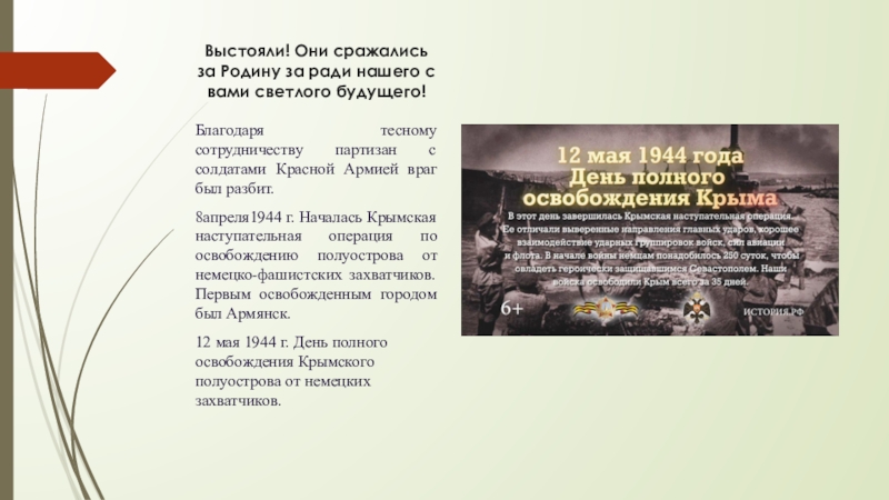 12 мая 1944 г. День полного освобождения Крымского полуострова от немецких захватчиков.