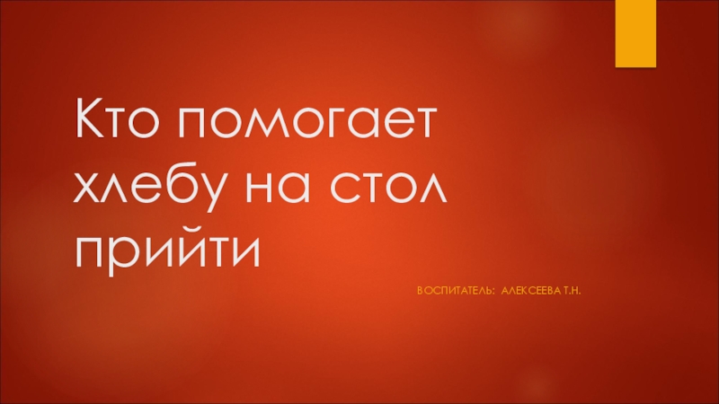 ВОСПИТАТЕЛЬ: АЛЕКСЕЕВА Т.Н.