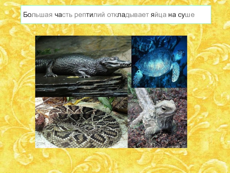 Слайд 7Большая часть рептилий откладывает яйца на суше