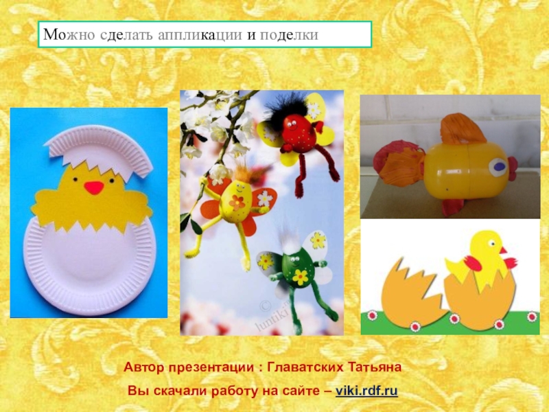 Можно сделать аппликации и поделкиАвтор презентации : Главатских ТатьянаВы скачали работу на сайте – viki.rdf.ru