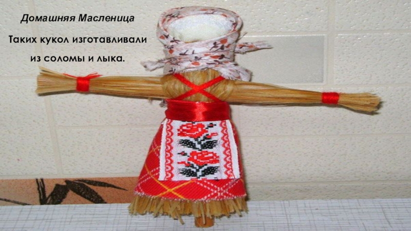 Домашняя МасленицаТаких кукол изготавливали из соломы и лыка.