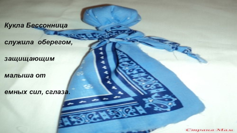Кукла Бессонница служила  оберегом, защищающим малыша от емных сил, сглаза.