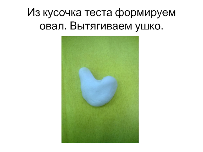 Слайд 15Из кусочка теста формируем овал. Вытягиваем ушко.