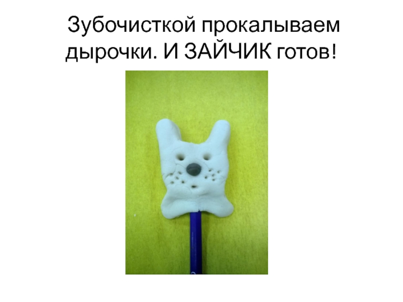 Слайд 20 Зубочисткой прокалываем дырочки. И ЗАЙЧИК готов!