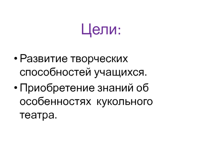 Приобретение знаний об особенностях кукольного театра.
