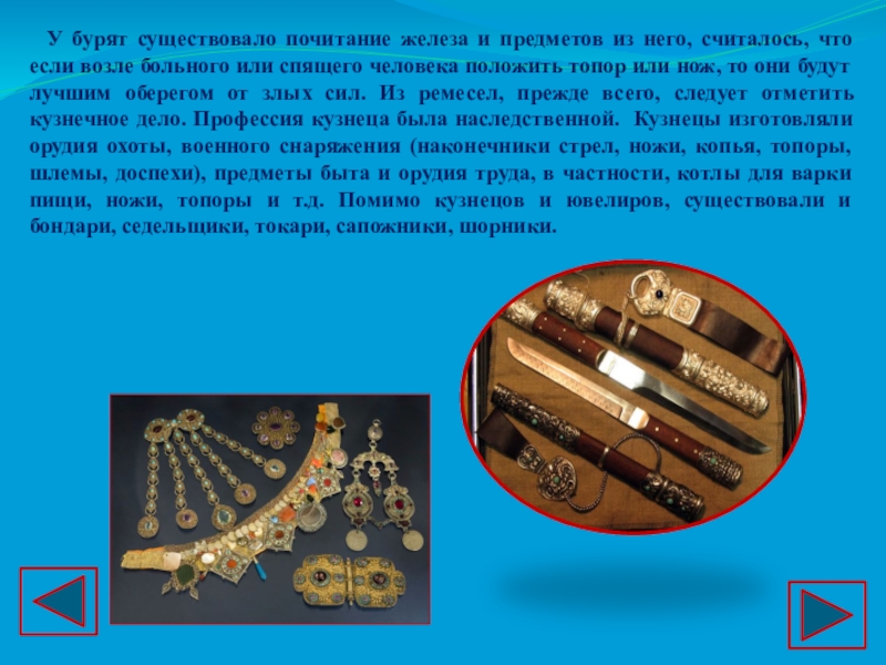 Слайд 17У бурят существовало почитание железа и предметов из него, считалось, что