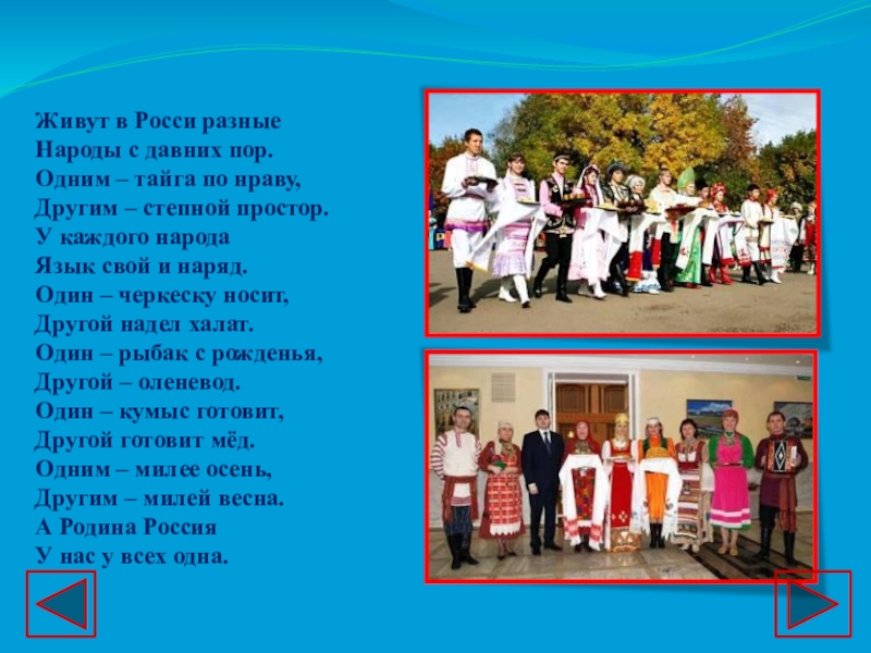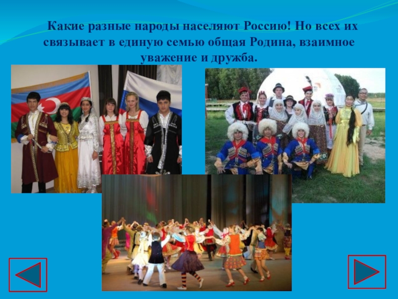 Слайд 19Какие разные народы населяют Россию! Но всех их связывает в единую