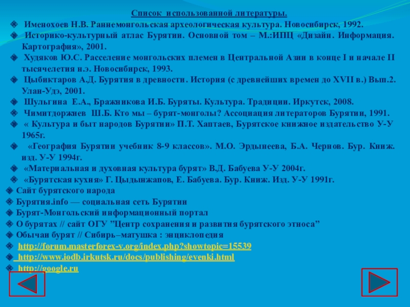 «Материальная и духовная культура бурят» В.Д. Бабуева У-У 2004г.