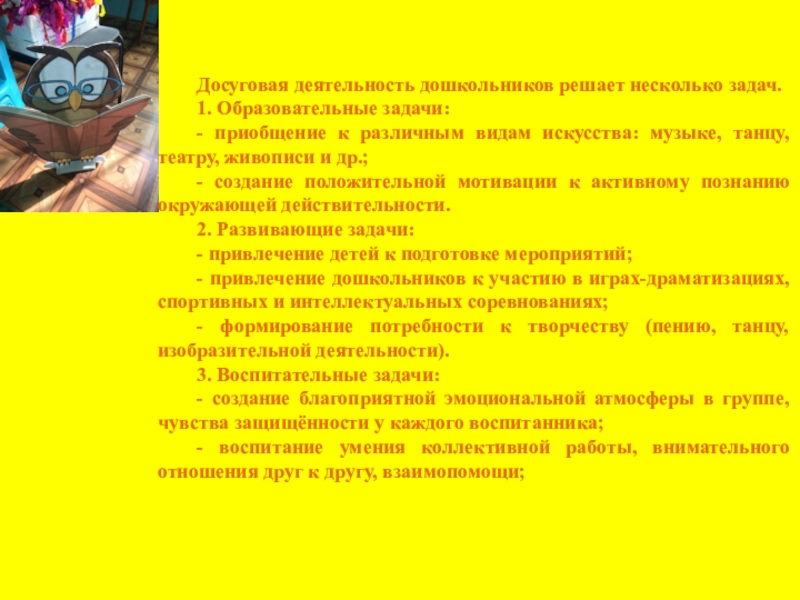 Слайд 8Досуговая деятельность дошкольников решает несколько задач.