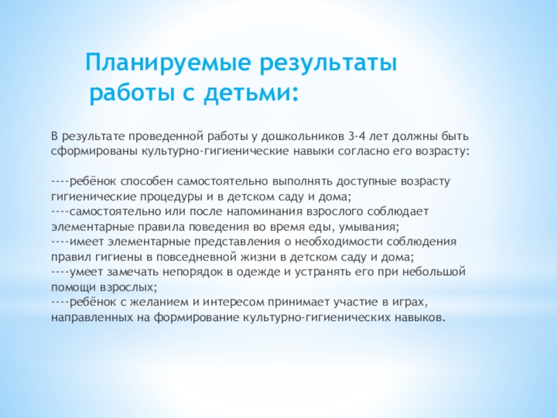 Планируемые результаты работы с детьми: