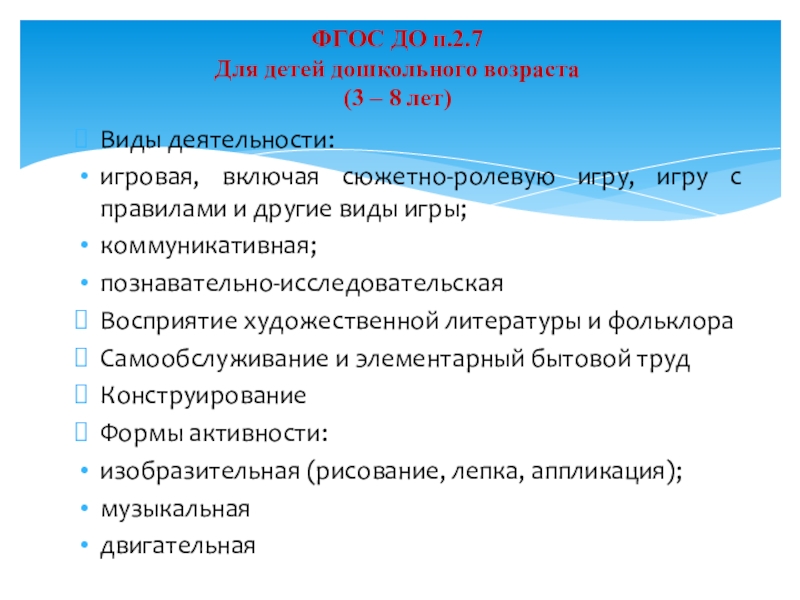 2.11.2. ФГОС ДО «В содержательном разделе Программы должны быть представлены: а) особенности образовательной деятельности разных видов и культурных практик»