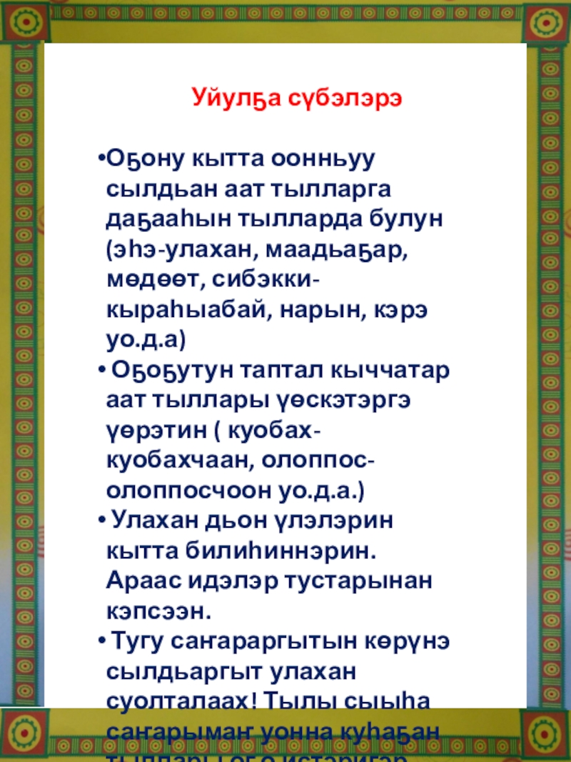 Олоххо куттал суох буолуутун тэрийии. Дэҥтэн- оһолтон сэрэтии.