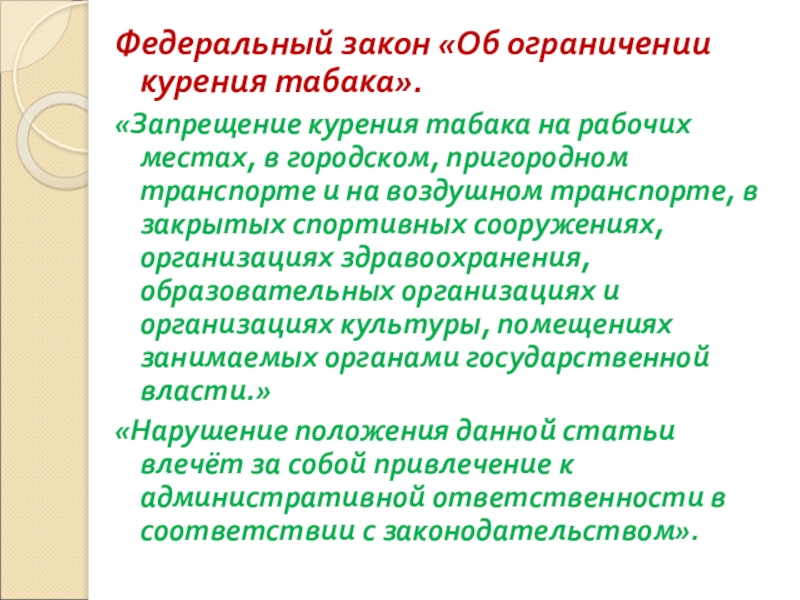 Слайд 20Федеральный закон «Об ограничении курения табака».