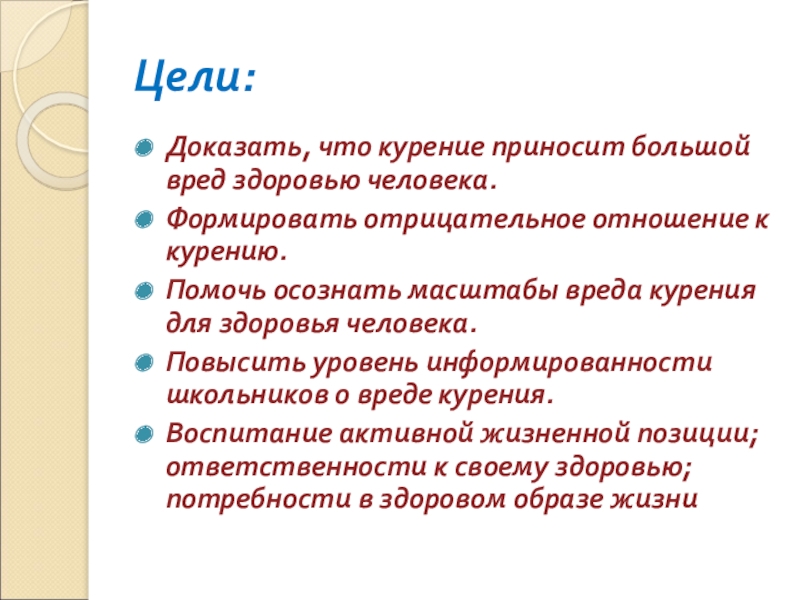 Помочь осознать масштабы вреда курения для здоровья человека.