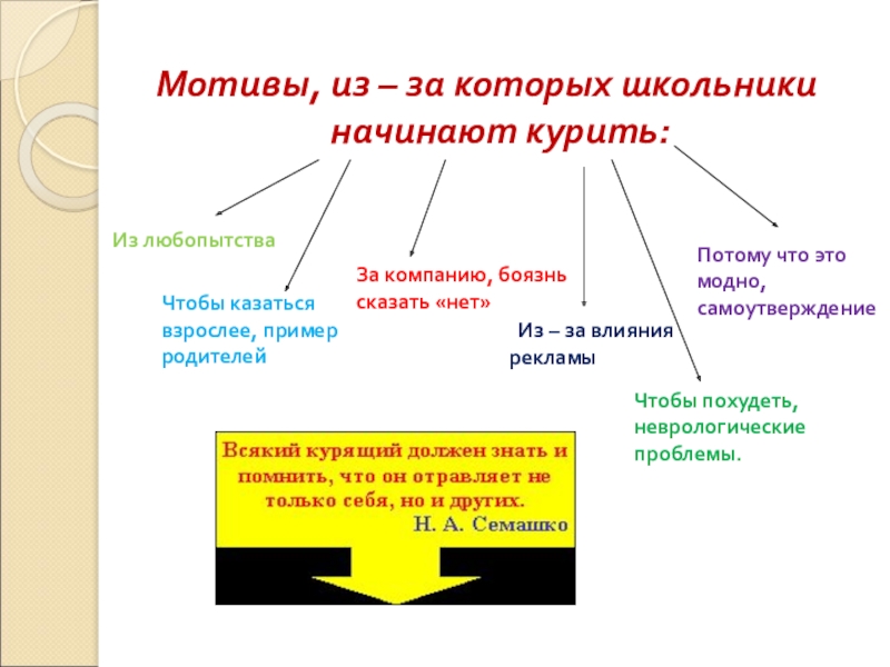 Дать достоверную информацию о причинах и последствиях табакокурении.