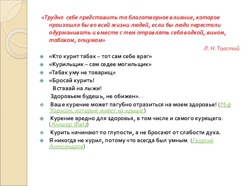 Слайд 21«Трудно себе представить то благотворное влияние, которое произошло бы во всей