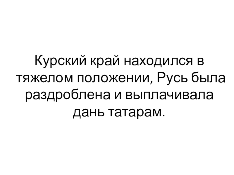 Слайд 2Курский край находился в тяжелом положении, Русь была раздроблена и выплачивала