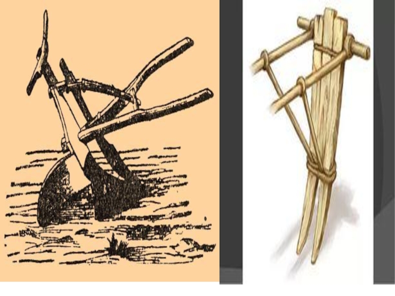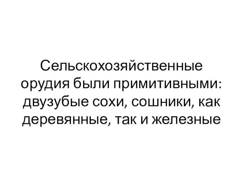 Слайд 10Сельскохозяйственные орудия были примитивными: двузубые сохи, сошники, как деревянные, так и