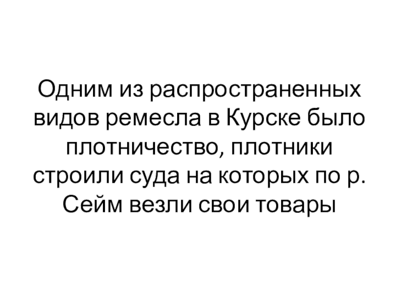 Одним из распространенных видов ремесла в Курске было плотничество, плотники строили суда на которых по р. Сейм
