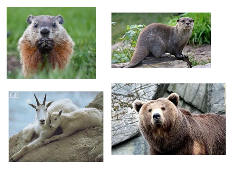 медведи, лоси, кабаны, выдры, сурки, дикие козы