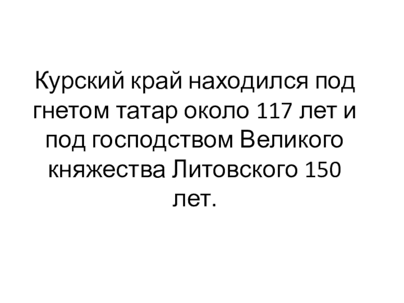 Слайд 4Курский край находился под гнетом татар около 117 лет и под