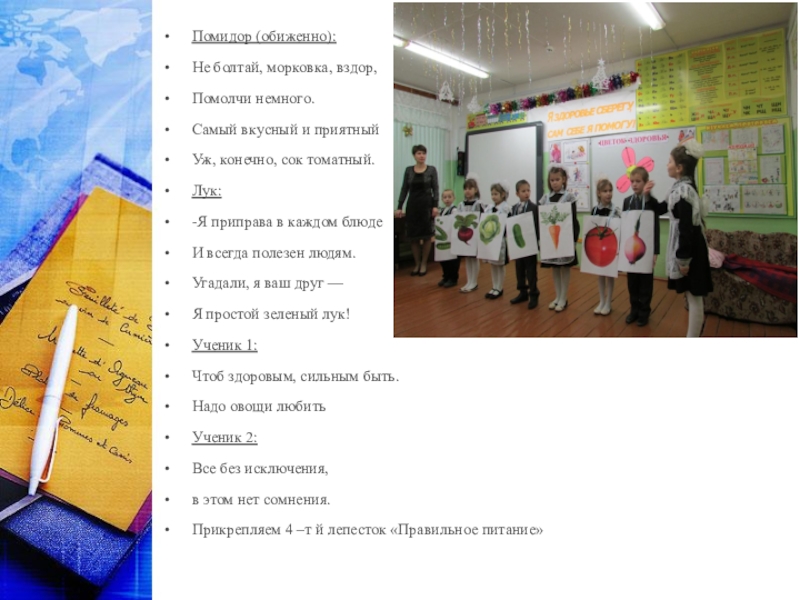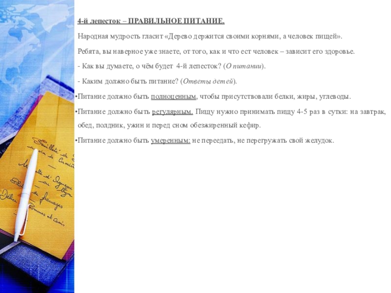 Прикрепляем 4 –т й лепесток «Правильное питание»