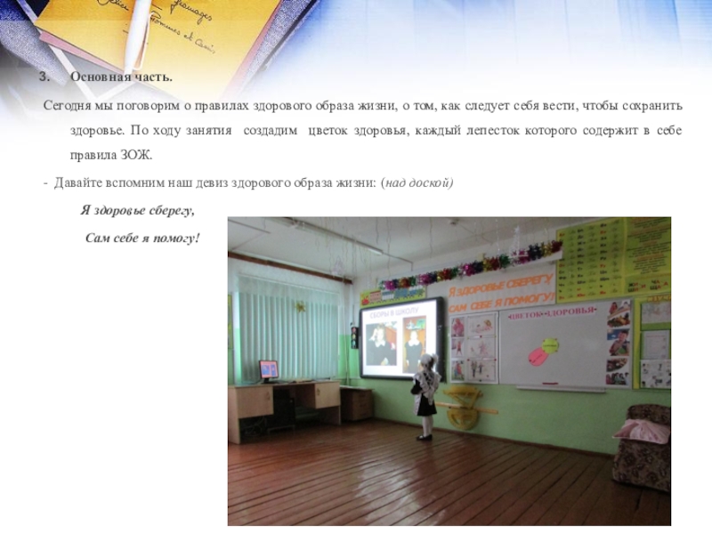 - Давайте вспомним наш девиз здорового образа жизни: (над доской)