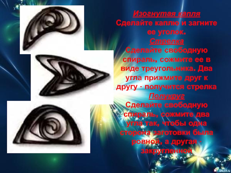 Сделайте свободную спираль и сожмите ее с одной стороны, чтобы она приобрела форму капли.