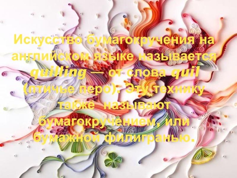 Слайд 2Искусство бумагокручения на английском языке называется quilling — от слова quil