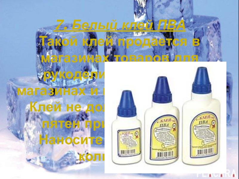 в книжных магазинах и в киосках печати. Клей не должен оставлять пятен при высыхании. Наносите минимальное количество.