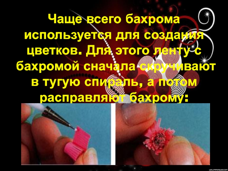 Слайд 17Чаще всего бахрома используется для создания цветков. Для этого ленту с