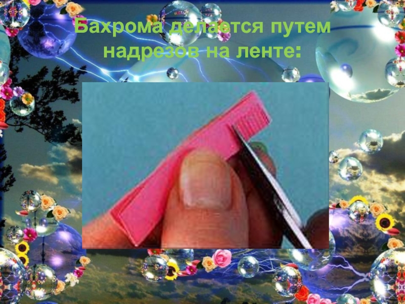 Слайд 16Бахрома делается путем надрезов на ленте: